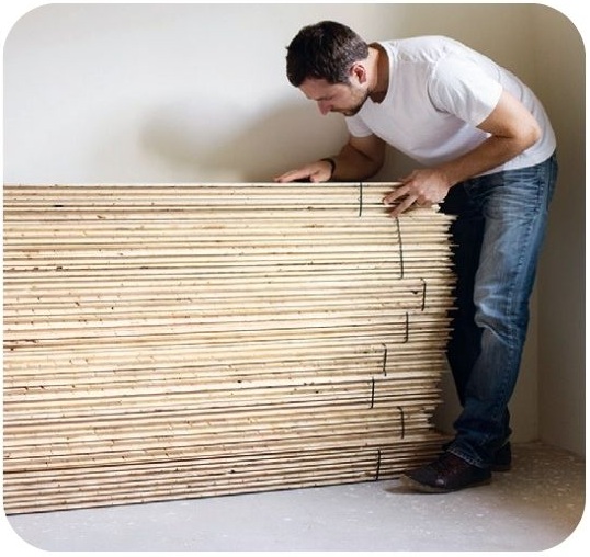 Laissez les planches s’acclimater 48 heures (idéalement 1 semaine en conditions humides) sans ouvrir l’emballage à température ambiante, au centre de la pièce.